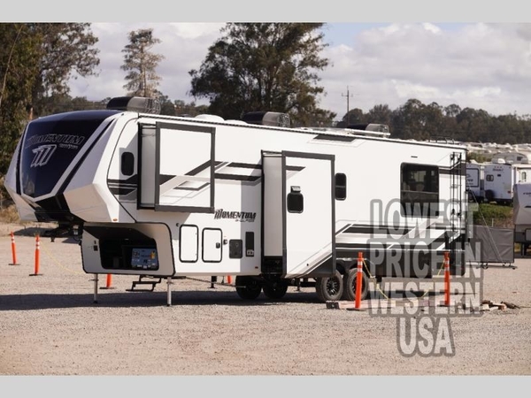 Are you looking for adventure and fun? The Momentum G-Class toy hauler by Grand Design will help you find it! You can explore during any season you choose with the Insulation Package that includes a heated and enclosed underbelly with suspended tanks, a high-capacity furnace, a moisture barrier floor enclosure, and cabinet-mounted heat ducts. Each model includes a fuel station with an interior and exterior gauge, a dovetail rear rend, and 2,500-LB tie-downs anchored into the chassis. Throughout the Momentum G-Class interior, you'll enjoy many comfortable features like large panoramic windows, a shower skylight, USB chargers in the bedroom, and residential cabinetry.