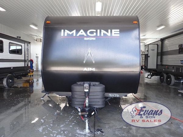 Aim for new destinations in one of these Grand Design Imagine AIM travel trailers! They are constructed to a superior standard with the 4-Seasons Protection Package that features a heated and enclosed underbelly with suspended tanks, a moisture barrier floor enclosure, a double insulated roof and front wall, and more. There is backup camera prep outside, along with a universal docking station, and a power tongue jack. You are sure to feel at home with residential cabinetry, premium window treatments, residential countertops, and a spacious walk-in shower to name a few comforts. The on-demand tankless water heater is a feature you won't want to camp without and the hi-definition LED TV will ensure you'll never go bored on rainy days. Each model also comes with four AIM packages; the Peace of Mind Package, The Ultimate Power Package, The 4-Season Protection Package, and the Solar Package!