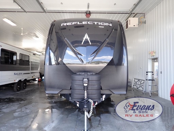 With any Reflection travel trailer by Grand Design, you will have a solar panel for off-grid camping and a 60 amp charge controller and inverter prep, a Universal All-In-One docking station, unobstructed pass-through storage, and Goodyear Endurance tires. Each is constructed of gel coat exterior sidewalls, residential 5" truss rafters, walk-on roof decking, a fiberglass and radiant foil roof and front cap insulation plus laminated aluminum framed side walls, roof and end walls in slide rooms. Head inside to enjoy residential hardwood cabinet doors, premium Congoleum flooring, a spacious shower with a glass door, and many more comforts!