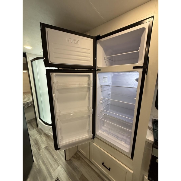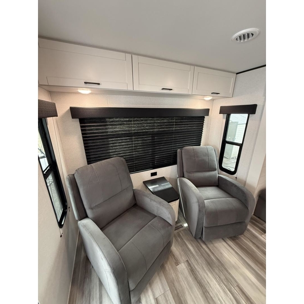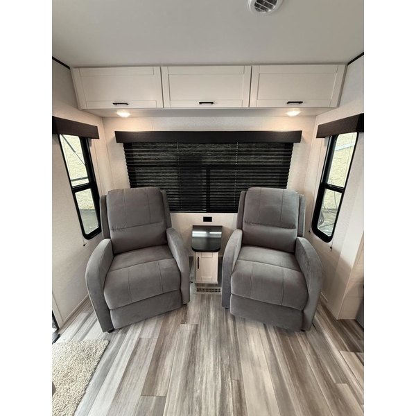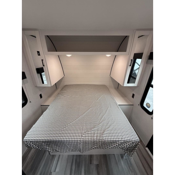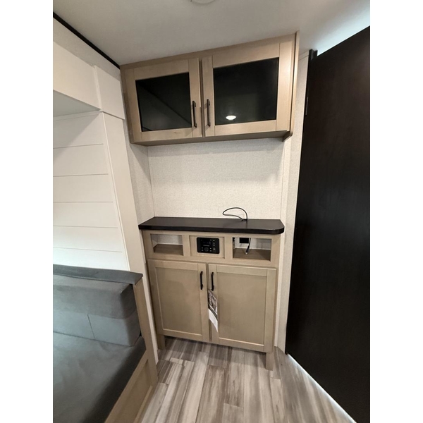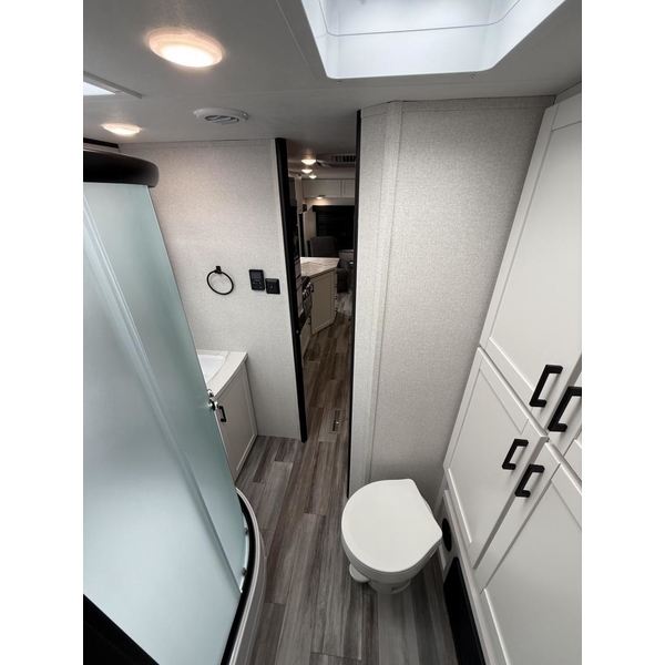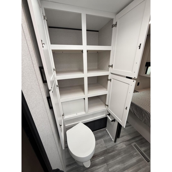Inside, youll find solid hardwood cabinet doors with hidden hinges, giving the space a modern, residential feel. Oversized cabinets and under-bed storage ensure theres room for everything you need, while the lit exterior passthrough storage makes packing and unpacking a breeze.