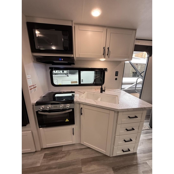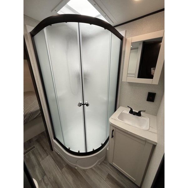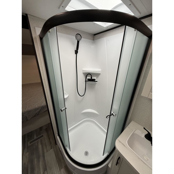 After a long day of exploring, step inside to enjoy instant hot water from the on-demand tankless water heaterup to 60,000 BTU in standard models and 42,000 BTU in the Sport Editionso you can clean up comfortably, just like at home. Oversized G20 dark-tinted windows flood the space with natural light while blocking heat and UV rays, giving you both stunning views and added privacy.
