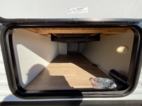 This fantastic travel trailer is designed to provide the ultimate in comfort, convenience, and adventure! The double-size bunk beds are perfect for kids, providing ample sleeping space and an under-bed storage space for all your belongings. The full bathroom features a linen closet, providing convenient storage for towels and toiletries. In the kitchen area, the U-shaped dinette is a great spot for creating memories that will last a lifetime, the refrigerator keeps your food and drinks fresh, while the microwave provides a quick and easy way to prepare meals. And for major convenience, the pull-out trash makes cleaning up a simple task. Take a nap in the comfortable front queen bed, which is a serene retreat, providing a comfortable spot to rest and relax. Jump to the exterior in a comfortable way with the double entry/exit door providing added convenience and flexibility, while the exterior awning provides shade and protection from the elements. The pass-through storage offers ample space for your outdoor gear and equipment.