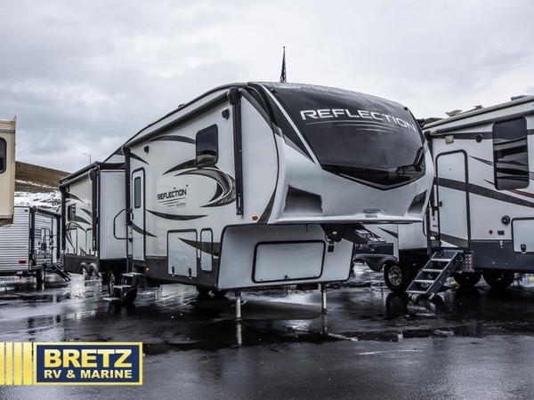 Luxury, value, and towability is what you will find in every one of these Reflection fifth wheels and travel trailers by Grand Design! The mandatory Arctic 4-Seasons Protection package allows you to camp all year round with the 35k BTU high capacity furnace, the Thermofoil insulation, and the heated and enclosed underbelly with circulating heat. Their gourmet kitchens have everything you will need to create home cooked meals including a deep, seated stainless steel sink with a high rise faucet with a pull down sprayer to make clean up easier too. The ductless flooring means there are no floor vent covers to collect dirt or debris, and the universal docking station is an all in one heated location with an EZ winterization system. Easily open the pivoting AXISTEP which will help eliminate debris and moisture from falling inside the unit and also goes all the way down to the ground to make it more stable when entering. Start your next camping trip in true luxury!