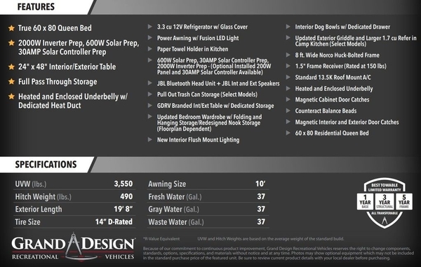 By submitting this request you agree to allow Grand Design & its dealer participants to contact you. We do not sell your information to any third parties. Any information obtained is kept private and is used only by Grand Design.