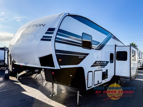 Each Reflection 100 Series fifth wheel by Grand Design is affordable and packed with luxury for unforgettable camping memories! The MorRyde CRE3000 suspension system and Goodyear Endurance tires will provide smooth towing from home to campground. And the solar package with a 180W solar panel, 60 Amp charge controller and 12V refrigerator will allow you to camp for longer periods of time and in more locations! A heated and enclosed underbelly with circulating heat is included in the Arctic 4-Seasons Protection Package, along with a double insulated roof and front cap, and thermofoil insulation under the holding tanks so you can camp all year long if you choose. You will appreciate having an on-demand water heater for hot showers after exploring, and the universal all-in-one docking station will let you monitor your RVs tanks levels and functions with ease. These models also include many luxurious interior features, such as premium Congoleum flooring, pleated shades, residential cabinetry, and matte black fixtures and hardware. Don't let the Reflection 100 Series fifth wheels pass you by!