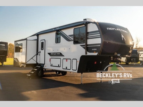With any Reflection fifth wheel by Grand Design, you will have a solar panel for off-grid camping and a 60 amp charge controller and inverter prep, a Universal All-In-One docking station, unobstructed pass-through storage, and Goodyear Endurance tires. Each is constructed of gel coat exterior sidewalls, residential 5" truss rafters, walk-on roof decking, a fiberglass and radiant foil roof and front cap insulation plus laminated aluminum framed side walls, roof and end walls in slide rooms. Head inside to enjoy residential hardwood cabinet doors, premium Congoleum flooring, a spacious shower with a glass door, and many more comforts!