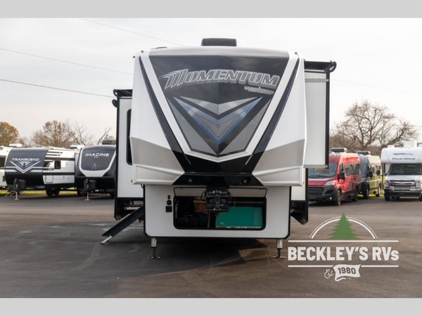 With any Momentum M-Class toy hauler fifth wheel you will enjoy extraordinary living with extreme playtime with the Weather-Tek insulation for four seasons of protection, and a fully enclosed fuel pump station to keep the fun going the whole time. The Tuff-Ply garage flooring is gas and oil resistant, plus triple insulated. You will find 2,500 lb. rated flush-mount tie-downs to keep your toys secure while moving down the road. The interior includes a sofa with headrest and removable swivel table, a convection microwave, a central vacuum system with tools and a dust pan, and a satellite/solar roof access channel to mention a few highlights. Any Grand Design Momentum M-Class allows you to keep your active lifestyle no matter where you decide to stay!
