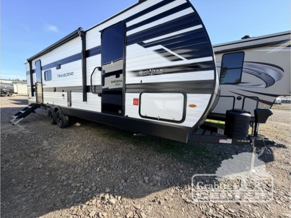 With any Transcend travel trailer by Grand Design, you will enjoy upscale appointments and convenient amenities to make each camping experience one to remember! The Quad Seal technology, residential insulated walls, plus heated and enclosed underbelly with suspended tanks make these units solid and durable. There is a black automotive glass door outside, along with a Safe-T-Rail assist on the main entry door, backup camera prep, and a universal docking station. JBL interior and exterior speakers plus a JBL head unit will let you listen to your favorite tunes as you visit under the power awning with LED strip lights. Inside, you'll enjoy multiple outlets to keep your gadgets charged, thermoformed and seamless countertops, and a 6' 6" interior height so you won't feel closed in. The Solar Prep Package will allow you to enjoy off-grid capabilities with a 200W solar panel, which is wired for up to 600W, a 30 AMP Bluetooth solar controller, a 2000W inverter prep, and more!