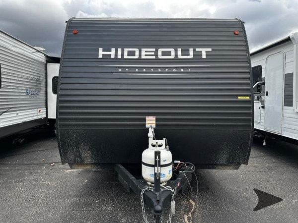 Open your horizons with the Hideout Sport Single Axle travel trailers by Keystone. They are compact, convenient, and lightweight; everything you're looking for in an RV! Each model features an aluminum exterior, tinted safety glass windows, and an I-beam frame with stamped steel cross-members and outriggers for added support. The interior includes blackout night shades for added privacy and real wood doors and drawers that will give a more at-home touch. The Girard tankless water heater is a feature you won't want to camp without, and the LED lighting will keep your space bright and open!