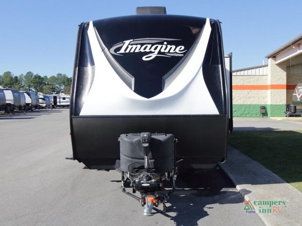 Every Imagine travel trailer is constructed with laminated aluminum framing on the sidewalls, floor, roof, and rear wall for lasting strength and lightweight towing. The one-piece roof membrane, drop-frame pass-through storage, and Universal Docking Station make setup, storage, and maintenance simple.