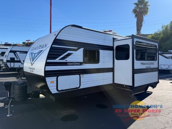The customer-focused, quality-built Transcend Xplor travel trailers by Grand Design are your ticket to fun and adventure. You will appreciate the power tongue jack when it comes time to set up, as well as the all-in-one utility center and the detachable power cord with an LED light. These models include many outlets throughout, USB ports to charge your gadgets, and a JBL exterior speaker to listen to your favorite tunes. The interior of the Transcend Xplor will have you feeling right at home with upgraded residential furniture, residential countertops, residential cabinet doors, and the list goes on!
