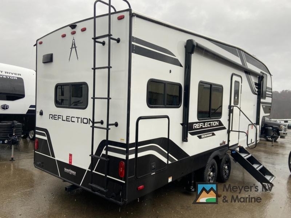 With any Reflection 150 Series fifth wheel by Grand Design, there is more available payload capacity and a broader range of half-ton trucks capable of towing this fifth wheel, and no slider hitch is needed thanks to the 90-degree turning radius which makes them short bed friendly and easier to tow. The mandatory Ultimate Power package provides a "One-Touch" automatic leveling system and a detachable power cord with LED light for easy setup, plus motion sensor pass-through lighting and entry lighting, and the Tire Linc TPMS will help you stay safe on the road. The interior offers residential cabinetry and premium Congoleum flooring, to the booth dinette and residential-style window treatment. Make your refined decision today!