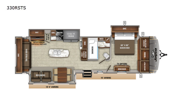 These famous Jayco Eagle fifth wheels and travel trailers come with a long and rich history of quality construction, modern styling, and innovative design! The 4-Star Handling Package comes standard on every model, and it includes reliable features, like 16" Goodyear Endurance tires, Dexter axles with Nev-R-Adjust brakes, E-Z Lube hubs, and MORryde CRE-3000 rubberized suspension. The MORryde StepAbove entrance steps with blue LED lights will provide a solid entry system so that you don't worry about falling over as you bring your luggage inside, and you will also rest assured knowing that the entire unit has been crafted with a StrongholdVBL aluminum-framed, vacuum-bonded gel-coated fiberglass, a Magnum Truss roof system, and a Climate Shield zero-degree tested weather protection.