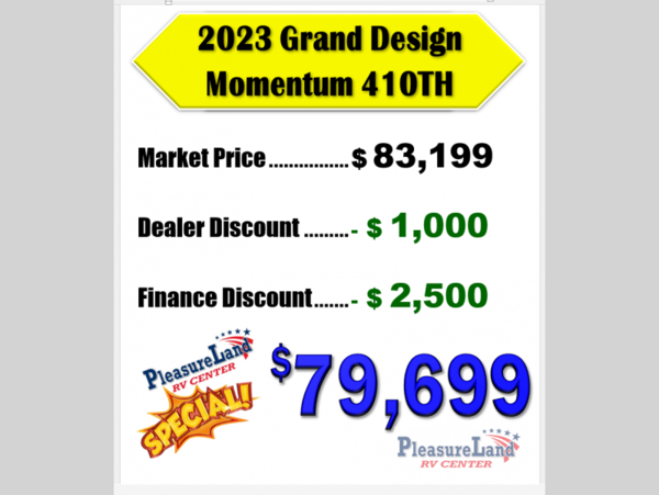 Grand Design Momentum fifth wheel toy hauler 410TH highlights: