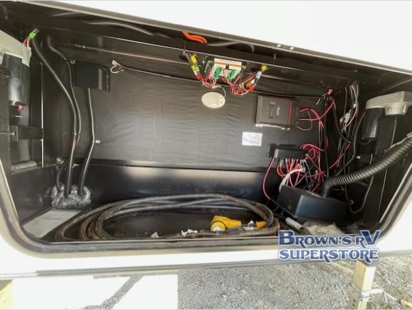 You can enjoy a spacious rear living area in this RV with dual opposing slides offering you entertainment, kitchen amenities, seating and windows for great views! The rear tri-fold sofa also converts into extra sleeping space for an extra guest or two, just like the booth dinette does. Yet you might like to add the free standing dinette option. There are theatre seats to enjoy while you place your drinks in the cupholders and watch the entertainment center with a 40" LED HDTV and fireplace. The pantry is big enough to store your favorite snacks, and the kitchen island will make meal prepping easier, plus there is a 16 cu. ft. refrigerator to store any leftovers. The full bathroom has a 30" x 48" fiberglass shower with a skylight above for natural lighting as you get ready and a linen closet to store your towels. The front private bedroom has a comfortable queen bed slide that can be switched out for the optional king bed, a dresser with overhead cabinets, and a full wall wardrobe that is prepped to add the optional washer and dryer so that you can extend your camping trip with clean clothes!