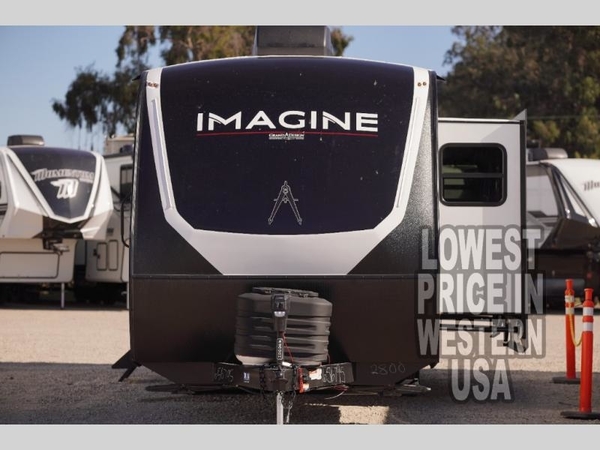 Just imagine leaving the world behind and secluding yourself away with your favorite people in your Grand Design Imagine travel trailer! The Imagine has been designed to enjoy camping and includes a high-capacity furnace, a heated and enclosed underbelly with suspended tanks, a designated heat duct to the subfloor, and a high-density roof insulation with attic vent. You'll have a large panoramic window to let natural lighting in and an adjustable Power Awning with LED Lights for those night gatherings. The exclusive drop-frame pass-through storage compartment is going to allow you to bring along lots of equipment, and the universal docking station is an all-in-one location for utilities and hook-ups. You'll also have oversized tank capacities so that you can fill and empty your tanks less often.