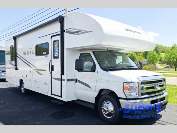 Experience easy living in any one of these Jayco Redhawk SE Class C gas motorhomes! They are built with a Stronghold VBL lamination which is the lightest and strongest construction in the RV industry. The one-piece seamless front cap which helps to resist wear and tear, the Ford E-350 chassis, and the 7.3L V8 325 HP engine reflects the strength and dependable performance built into every unit. The mandatory Customer Value package includes an electric patio awning to protect you rain or shine, an LED HD Smart TV, and a backup camera to make parking and maneuvering easier. You will also love your options that include automatic hydraulic leveling jacks and an optional 200W solar panel with a dual controller and second house battery for off-grid capabilities!