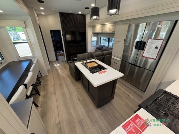 The Grand Design Momentum 399M combines residential comfort with extreme toy hauler capability. With three A/C units, a king bed, a fully equipped kitchen, and a 12' 6" garage, its perfect for both off-grid adventures and luxury living on the road.