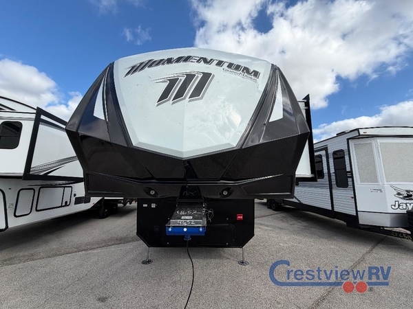The Momentum fifth wheel toy haulers by Grand Design are built for four seasons of travel with your off-road toys and include luxurious accommodations throughout for extreme living! Each is constructed to a superior standard with the fully enclosed and heated underbelly and storage area, the 5-sided aluminum cage, and the triple insulated garage floor. The MORryde CRE3000 suspension system and rubber pin box, plus the upgraded axle hangers provide the performance and smooth towing you desire, while the interior offers luxury such as color changing LED accent lighting, hardwood cabinet doors with hidden hinges, and a central vacuum system. Each toy hauler also includes four packages, including the Garage Package with Tuff-Ply gas and oil-resistant flooring, the Weather-Tek Package with a Stealth AC System, and the Interior Luxury Package with solid surface countertops!