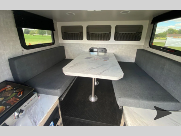 Pack your bags and load up this truck camper onto your truck! The full size dinette can comfortably sit four people and also convert into a 48" x 80" bed for a comfortable place to lay your head at night. Underneath the dinette is storage space for extra blankets or games. You also have dual storage cabinets with countertop space that can be used any way you need. A few options you might want to add is an optional Truma furnace, a roof mounted A/C to keep you cool on the hottest days, a roof rack to bring all of your necessities, and a Batwing awning to protect you!