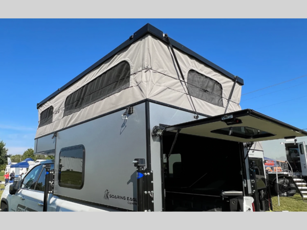 The OV-X truck topper camper by Soaring Eagle is perfect for those who want simple, but comfortable camping options. The tubular aluminum construction includes fully insulated floor, sidewalls, endwalls and roof, and the quality exterior windows on each sidewall will provide ventilation while you're sleeping for the night. There is also a rugged, durable composite interior wall board and LED interior light rings integrated into the vents to provide light in the evenings. You may want to add one or more of the available options to further customize your camper, such as a MaxxAir Fan, a 200W or 400W solar panel roof system, rear flood lights, and more!