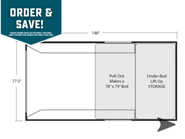 This is the perfect truck topper camper for an 8' bed! After you have been driving all day, you can find a campground to rest at for the night. The strut-assisted roof top features a water-resistant tent with integrated windows and screens and will provide more interior space to relax on the 78" x 74" bed. There is also convenient under-bed storage here for your belongings and camp gear. In the morning you can use the camp's shower to freshen up before using the optional portable Blackstone griddle to make breakfast, then head out for the day to hike, fish, or hunt!