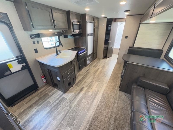 The Jayco Jay Flight SLX 8 267BHS travel trailer combines family-friendly layouts with durable construction and modern conveniences. With double bunk beds, a front private bedroom, rear corner bath, and both indoor and outdoor kitchens, it provides comfort and functionality for any camping trip. Enjoy premium features, entertainment options, and thoughtful design that make every adventure easy and enjoyable.