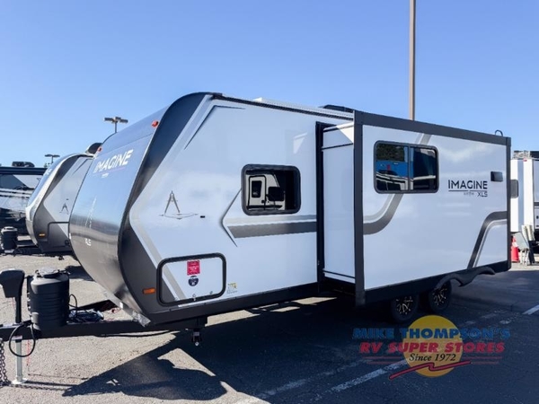 Let your imagination run wild with the possibilities that the Grand Design Imagine XLS travel trailer can provide! The Imagine XLS has been built with oversized tank capacities, an extra-large 2" fresh water drain valve, a ducted A/C system, a power tongue jack, and a heated and enclosed underbelly with suspended tanks. There is a designated heat duct to the subfloor and a residential ductless heating system throughout. For outdoor adventures, the electric awning with LED lights will enable you to stay protected, and the Tuff-Ply pass-thru flooring will withstand your adventures. You will also love the XLS Solar Package that comes with a 200W roof mounted solar panel, a 30 Amp charge controller, a 12V 10 cu. ft. refrigerator, and roof mounted quick connect plugs!