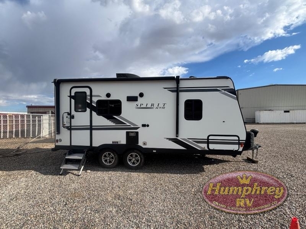 Each Spirit XTR travel trailer by Coachmen is constructed with a laminated, aluminum framed floor, sidewalls and rear wall, plus Azdel composite panels in place of Luaun plywood, and a Tufflex PVC roof membrane to provide a lightweight, sturdy and easy to tow trailer by a smaller tow vehicle. The interior includes lumber core cabinets stiles, mortis and tenon cabinet doors, and seamless thermo foil wrapped countertops for easy care. You will also find the MAX BED storage feature which offers a walk-through area under the bed with drawers, extra storage for pillows, blankets and shoes, plus a padded seat allowing you to easily put on your shoes each morning. A few more features you are sure to appreciate include a wireless phone charger, motion activated floor lights, a battery disconnect switch and a digital level. Make your selection today!