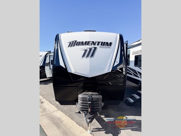 Are you looking for adventure and fun? The Momentum G-Class toy hauler by Grand Design will help you find it! You can explore during any season you choose with the Insulation Package that includes a heated and enclosed underbelly with suspended tanks, a high-capacity furnace, a moisture barrier floor enclosure, and cabinet-mounted heat ducts. Each model includes a high capacity water pump, a dovetail rear end, and 2,500-LB tie-downs anchored into the chassis. Throughout the Momentum G-Class interior, you'll enjoy many comfortable features like large panoramic windows, a shower skylight, USB chargers in the bedroom, and residential cabinetry.