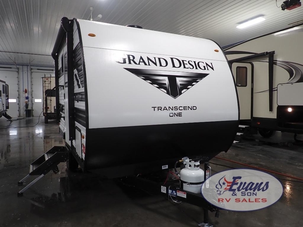 With any Transcend One travel trailer by Grand Design, you will enjoy lightweight towing thanks to their single-axle. There are many interior comforts to make camping easier than ever, such as recessed lighting, residential countertops, and a 6' 6" interior height. Each model is constructed with a heated and enclosed underbelly with suspended tanks, a moisture barrier floor enclosure, and Thermofoil over the roof and front cap for added protection. And a JBL sound system will let you listen to tunes as you visit under the power awning with a Fusion light!