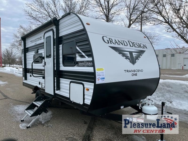 With any Transcend One travel trailer by Grand Design, you will enjoy lightweight towing thanks to their single-axle. There are many interior comforts to make camping easier than ever, such as recessed lighting, residential countertops, and a 6' 6" interior height. Each model is constructed with a heated and enclosed underbelly with suspended tanks, a moisture barrier floor enclosure, and Thermofoil over the roof and front cap for added protection. And a JBL sound system will let you listen to tunes as you visit under the power awning with a Fusion light!