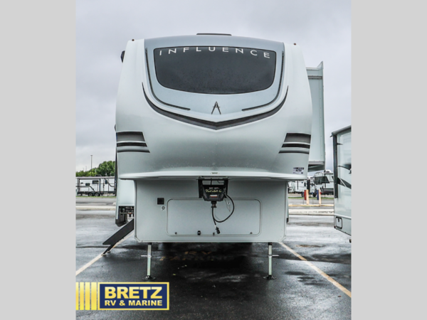 Any Grand Design Influence fifth wheel features five-sided aluminum cage construction with a walk-on roof and a fully enclosed underbelly with heated tanks and storage for all weather camping. For peace of mind, the MORryde CRE3000 Suspension system will provide safe and smooth towing, and the 101" widebody construction offers all the room you need and that is before multiple slides are fully engaged. You will appreciate the Keyed-Alike locks, slam-latch baggage doors with magnetic door catches, exterior security light, and SolidStep entry steps. On the inside, Congoleum flooring, premium roller shades for privacy, a hallway handrail for safety, and nightstands with USB ports to keep all of your electronics fully charged. You will also love the On Demand tankless water heater when showering, plus the added heat and ambiance from an electric fireplace, and so much more!