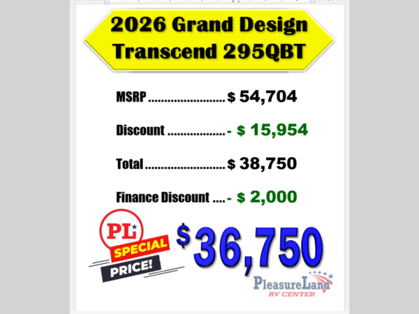 Grand Design Transcend travel trailer 295QBT highlights: