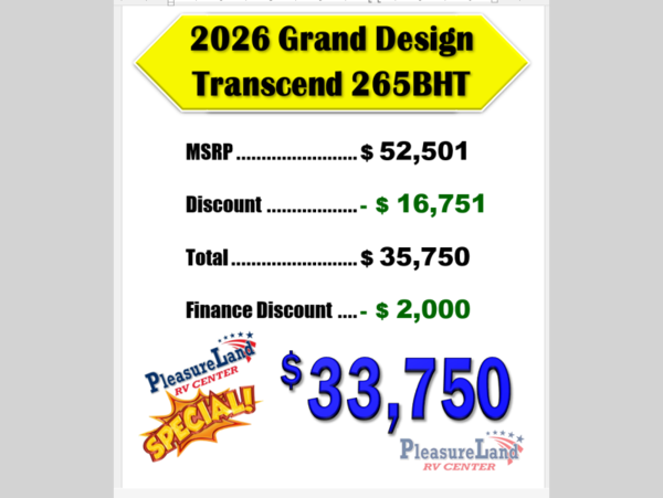 With any Transcend travel trailer by Grand Design, you will enjoy upscale appointments and convenient amenities to make each camping experience one to remember! The Quad Seal technology, residential insulated walls, plus heated and enclosed underbelly with suspended tanks make these units solid and durable. There is a black automotive glass door outside, along with a Safe-T-Rail assist on the main entry door, backup camera prep, and a universal docking station. JBL interior and exterior speakers plus a JBL head unit will let you listen to your favorite tunes as you visit under the power awning with LED strip lights. Inside, you'll enjoy multiple outlets to keep your gadgets charged, thermoformed and seamless countertops, and a 6' 6" interior height so you won't feel closed in. The Solar Prep Package will allow you to enjoy off-grid capabilities with a 200W solar panel, which is wired for up to 600W, a 30 AMP Bluetooth solar controller, a 2000W inverter prep, and more!