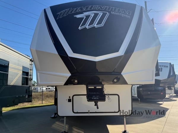 Are you looking for adventure and fun? The Momentum G-Class toy hauler by Grand Design will help you find it! You can explore during any season you choose with the Insulation Package that includes a heated and enclosed underbelly with suspended tanks, a high-capacity furnace, a moisture barrier floor enclosure, and cabinet-mounted heat ducts. Each model includes a high capacity water pump, a dovetail rear end, and 2,500-LB tie-downs anchored into the chassis. Throughout the Momentum G-Class interior, you'll enjoy many comfortable features like large panoramic windows, a shower skylight, USB chargers in the bedroom, and residential cabinetry.