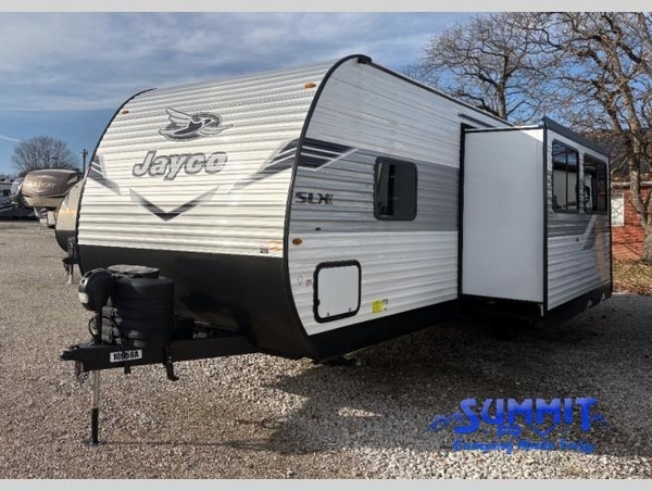 The Jayco Jay Flight SLX travel trailer is quite easy to own because it is lightweight for an easier towing experience. Built on a fully integrated A-frame with galvanized-steel, impact-resistant wheel wells, the Jay Flight SLX has quality at its very foundation. That quality continues on to the electric self-adjusting brakes, easy-lube hubs, Magnum Truss roof system, and LP quick connect. Some of what the mandatory Customer Value Package includes is backup camera prep, Keyed-Alike entry and baggage doors, marine grade exterior speakers, and an on-demand tankless water heater.