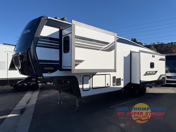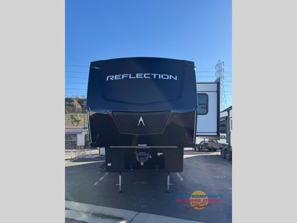 With any Reflection fifth wheel by Grand Design, you will have a solar panel for off-grid camping and a 60 amp charge controller and inverter prep, a Universal All-In-One docking station, unobstructed pass-through storage, and Goodyear Endurance tires. Each is constructed of gel coat exterior sidewalls, residential 5" truss rafters, walk-on roof decking, a fiberglass and radiant foil roof and front cap insulation plus laminated aluminum framed side walls, roof and end walls in slide rooms. Head inside to enjoy residential hardwood cabinet doors, premium Congoleum flooring, a spacious shower with a glass door, and many more comforts!