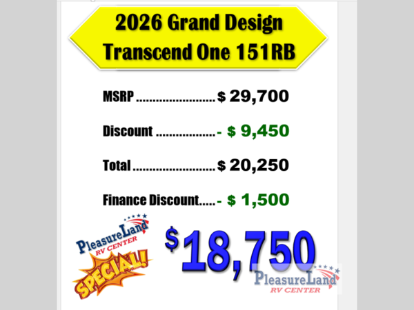 Grand Design Transcend One travel trailer 151RB highlights: