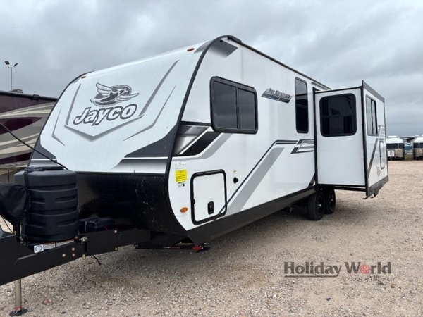 With any Jay Feather travel trailer by Jayco, you will enjoy lightweight towing, convenient exterior amenities, and at-home comforts inside! The Overlander 1 Solar Package included within the Jay Sport Package comes with a 200W solar panel and a 30-amp digital controller so you can enjoy some off-grid camping. There is also a modern graphics package, Solid fold-down step with aluminum tread steps on the main entry doorstep, and Climate Shield 0 -100° F tested weather insulation package that will allow you to camp in various types of climates. The Customer Value Package will make time outdoors easier than ever with a power tongue jack and Automotive-style aluminum rims, plus radial tires with self-adjusting electric brakes. More exterior features include a Keyed-Alike doors, a Magnum Truss roof system, and the list goes on! And we haven't even touched on the interior comforts, like the seamless countertops and Residential vinyl flooring throughout, decorative kitchen backsplash, handcrafted hardwood door/drawer fronts, and multiple USB charging ports to keep you going!