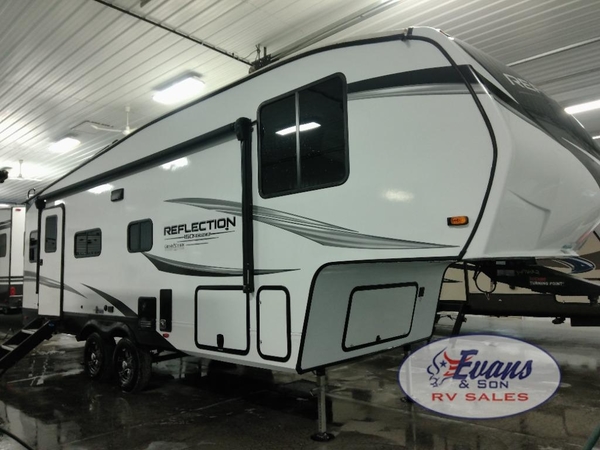 Feel right at home in this Reflection 150 Series with a private bedroom that includes a walk-around queen bed with storage on each side, windows, and a space savings sliding door. The full bathroom offers a walk-in shower, storage for your linens and a sliding door for easy access. When you get hungry, the cook will have an L-shaped kitchen area to make meals, plus full amenities including a 30" microwave, a flip-up counter extension, a pantry for your dry goods and a 16 cu. ft. refrigerator to store lots of food and cold beverages. You can dine at the rear U-shaped dinette lounge and enjoy the view out of all the windows or outside under the 18' electric awning. And the 78" theatre seating will be a nice place to relax and watch the 40" LED HDTV.