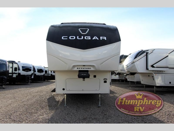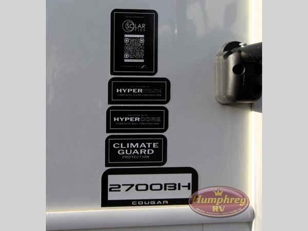 The Cougar Sport structural I-beam frame with stamped steel cross-members and outriggers, plus its AlphaPly roof membrane are what active RVers love about the construction of the Cougar line. The Cougar Sport models are no exception when it comes to a great package, as well as being smaller and lighter weight than their big brother Cougar models. A one-piece, heated and enclosed polypropylene underbelly will add protection against the elements, and the electric stabilizer jacks will provide more stability. On the inside, residential shaker style hardwood cabinet doors and decorative crown molding, plus seamless pressed countertops and an on-demand water heater will make your unit feel even more like home. You are also sure to appreciate the shiplap style decorative accent wall behind the bed, a porcelain foot flush toilet in the bathroom, plus residential kitchen hardware, and so much more.