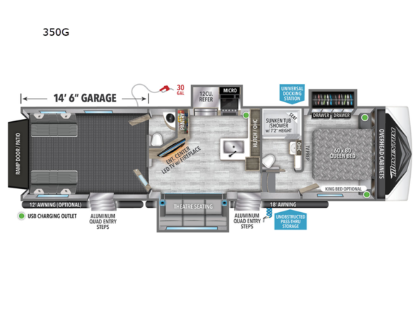 Grand Design Momentum G-Class toy hauler 350G highlights: