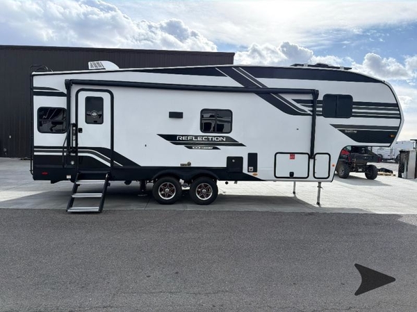 Each Reflection 100 Series fifth wheel by Grand Design is affordable and packed with luxury for unforgettable camping memories! The MorRyde CRE3000 suspension system and Goodyear Endurance tires will provide smooth towing from home to campground. And the solar package with a 180W solar panel, 60 Amp charge controller and 12V refrigerator will allow you to camp for longer periods of time and in more locations! A heated and enclosed underbelly with circulating heat is included in the Arctic 4-Seasons Protection Package, along with a double insulated roof and front cap, and thermofoil insulation under the holding tanks so you can camp all year long if you choose. You will appreciate having an on-demand water heater for hot showers after exploring, and the universal all-in-one docking station will let you monitor your RVs tanks levels and functions with ease. These models also include many luxurious interior features, such as premium Congoleum flooring, pleated shades, residential cabinetry, and matte black fixtures and hardware. Don't let the Reflection 100 Series fifth wheels pass you by!