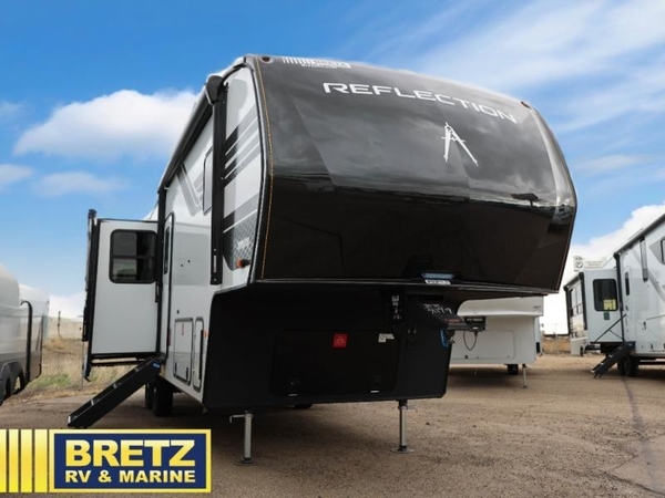 With any Reflection fifth wheel by Grand Design, you will have a solar panel for off-grid camping and a 60 amp charge controller and inverter prep, a Universal All-In-One docking station, unobstructed pass-through storage, and Goodyear Endurance tires. Each is constructed of gel coat exterior sidewalls, residential 5" truss rafters, walk-on roof decking, a fiberglass and radiant foil roof and front cap insulation plus laminated aluminum framed side walls, roof and end walls in slide rooms. Head inside to enjoy residential hardwood cabinet doors, premium Congoleum flooring, a spacious shower with a glass door, and many more comforts!