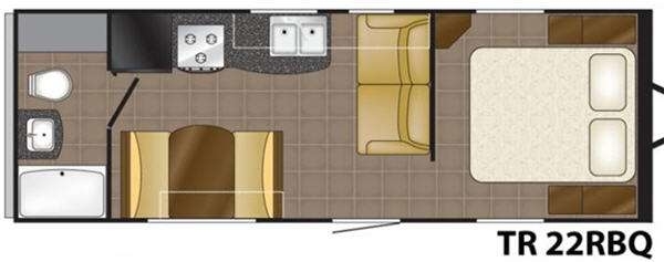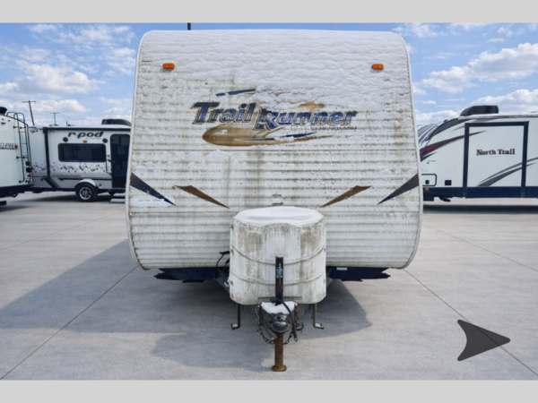 Heartland Trail Runner Trailer w/Rear Full Bath Including Tub/Shower, Toilet, Sink & Large Wardrobe, Booth Dinette w/Overhead Above, Refrigerator, 3 Burner Range, Dbl. Kitchen Sink, Sofa, Front Queen Bed w/Shirt Closets Above Nightstands, Corner TV Cabinet and More!