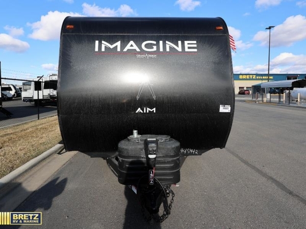 Aim for new destinations in one of these Grand Design Imagine AIM travel trailers! They are constructed to a superior standard with the 4-Seasons Protection Package that features a heated and enclosed underbelly with suspended tanks, a moisture barrier floor enclosure, a double insulated roof and front wall, and more. There is backup camera prep outside, along with a universal docking station, and a power tongue jack. You are sure to feel at home with residential cabinetry, premium window treatments, residential countertops, and a spacious walk-in shower to name a few comforts. The on-demand tankless water heater is a feature you won't want to camp without and the hi-definition LED TV will ensure you'll never go bored on rainy days. Each model also comes with four AIM packages; the Peace of Mind Package, The Ultimate Power Package, The 4-Season Protection Package, and the Solar Package!