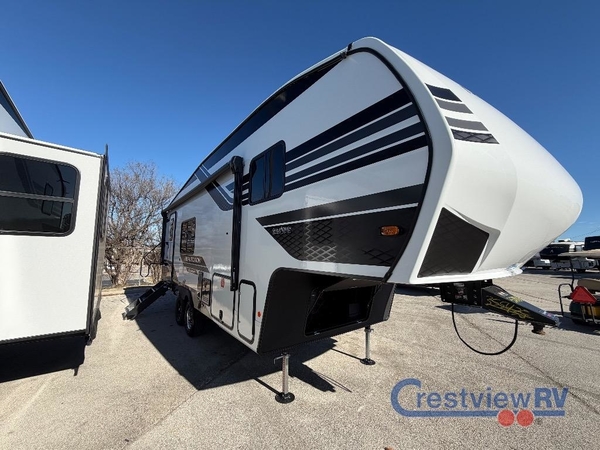 This rear kitchen fifth wheel is sure to meet all of your camping needs! Since the exterior length is only 26' 11", you can easily maneuver in and out of campgrounds. The rear kitchen includes ample counter space to prep meals, a three burner cooktop, and overhead storage for all your necessities. There is a 10 cu. ft. 12V refrigerator within the slide out that also includes the theater seating, and the U-shaped dinette provides a place to dine or play a card game. You will appreciate having convenient storage by the entry door, along with pull-out pet bowls, a functional wardrobe closet in the bedroom and an exterior pass-thru for belongings and camping gear. When you're ready to turn in for the night, the queen bed is sure to bring a great night's rest, while your guests sleep on the booth dinette or optional tri-fold sofa if you replace the theater seating!