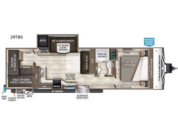 Grand Design Transcend travel trailer 29TBS highlights: