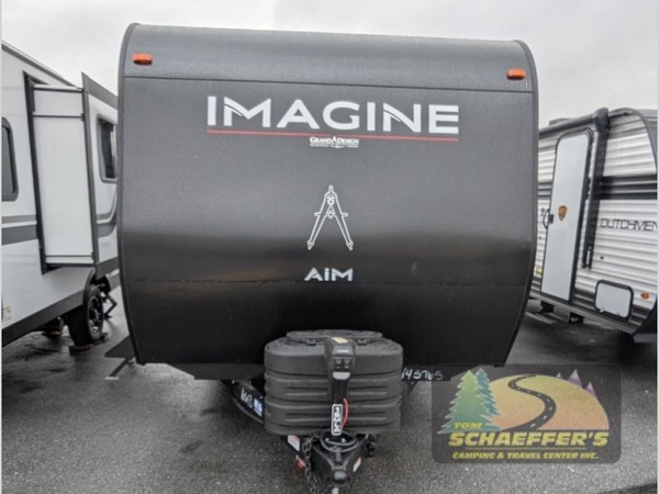 Aim for new destinations in one of these Grand Design Imagine AIM travel trailers! They are constructed to a superior standard with the 4-Seasons Protection Package that features a heated and enclosed underbelly with suspended tanks, a moisture barrier floor enclosure, a double insulated roof and front wall, and more. There is backup camera prep outside, along with a universal docking station, and a power tongue jack. You are sure to feel at home with residential cabinetry, premium window treatments, residential countertops, and a spacious walk-in shower to name a few comforts. The on-demand tankless water heater is a feature you won't want to camp without and the hi-definition LED TV will ensure you'll never go bored on rainy days. Each model also comes with four AIM packages; the Peace of Mind Package, The Ultimate Power Package, The 4-Season Protection Package, and the Solar Package!